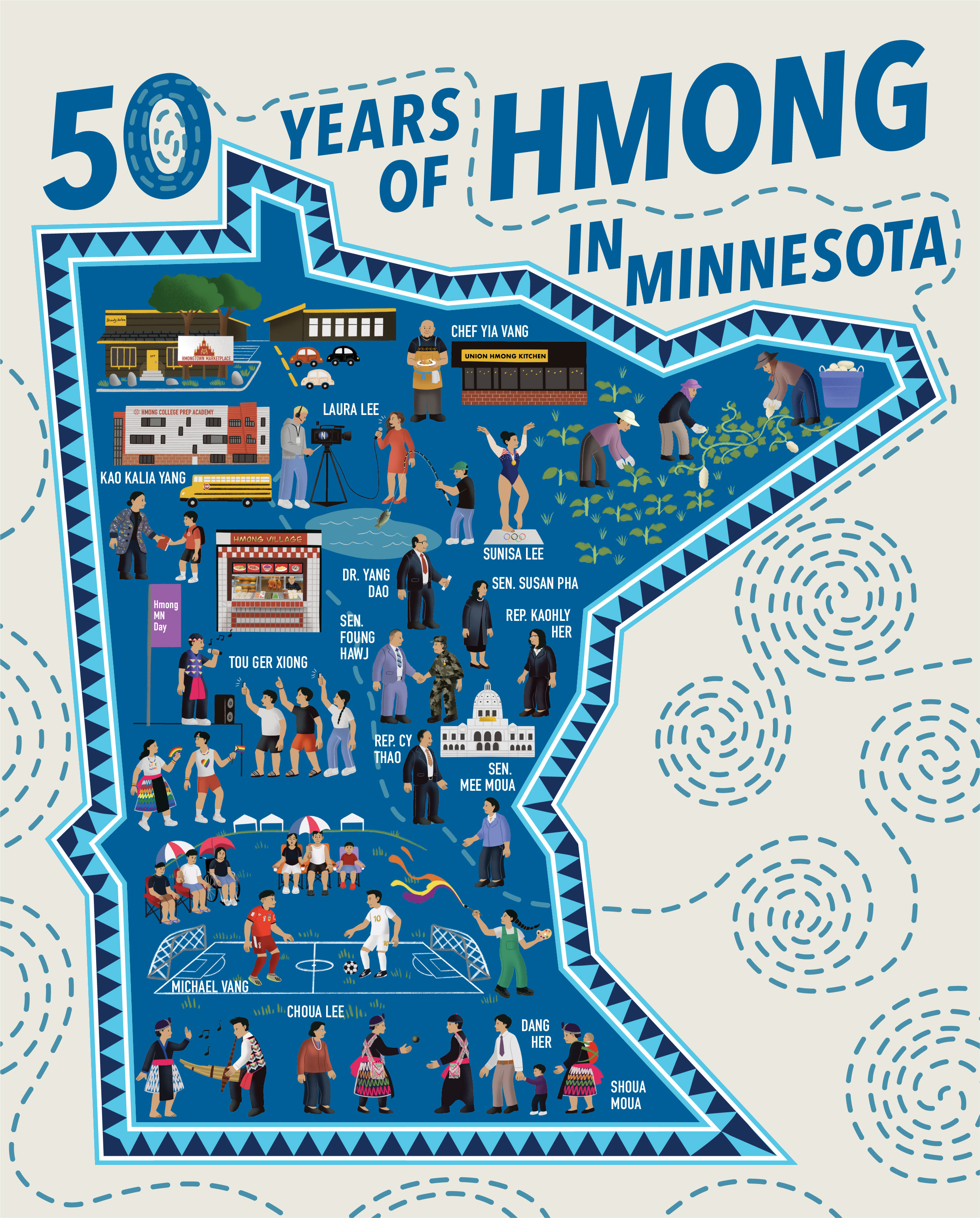 In commemoration of fifty years of the HMong community in Minnesota, a selection of paaj/paj ntaub from MNHS’s collections are on display at the Minnesota History Center. The selection highlights the exquisite artistic skills and ingenuity of HMong women. For generations, women provided clothing, household items, and income while preserving and passing on cultural symbols and stories to younger generations. Historically, HMong is an oral language. Hear text from this exhibit spoken in both Green and White HMong below. Additionally, English transcription of the exhibit text have been made available.